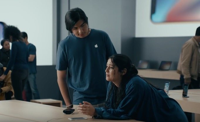 Apple Store v reklamě vypadá děsně. Jak si může někdo myslet, že se skutečně jedná o Apple Store? Prostředí vypadá úplně jinak. Sami to víte, pokud jste někdy nějaký Apple Store navštívili. Ani přístup technika, který se ženou její problém řeší, není v žádném případě takový, jaký by měl u Applu být.