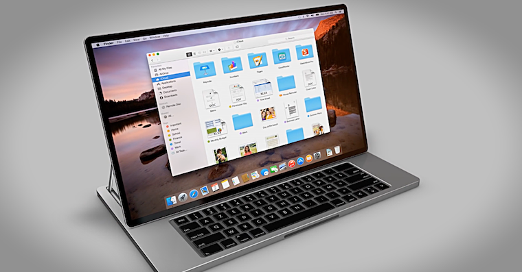 MacBook, nebo tablet? Se skládacím MacBookem Touch můžete mít obojí. V režimu notebooku se polovina OLED displeje promění v dotykovou klávesnici s trackpadem. Koncept má na svědomí Tommaso Gecchelin.