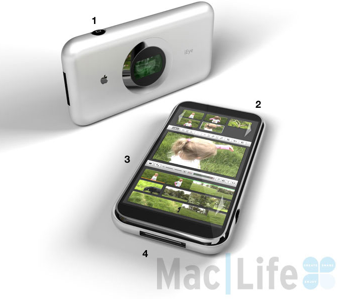 iPhone Video na první pohled zaujme „hranatým“ designem, zajímavým zakřivením zad a postranními tlačítky pro pořízení a ovládání videa. Koncept pochází z dílny Chromatix.