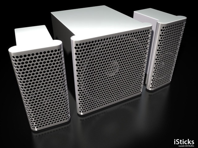 Souprava reproduktorů iStick je kompatibilní se širokou škálou jablečných výrobků. Reproduktory se vyznačují „hranatým“ designem a hliníkovým provedením.