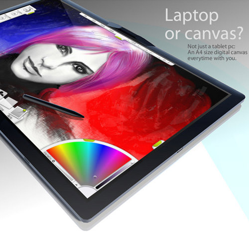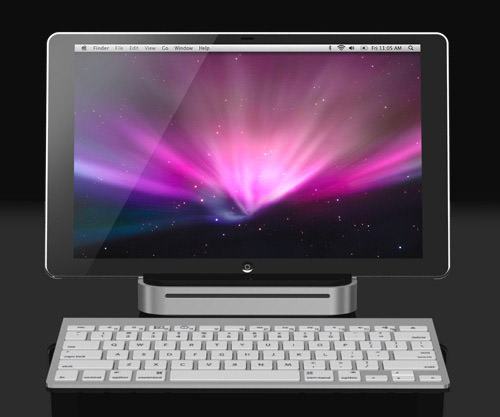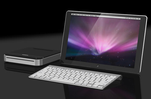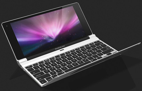 Apple Netbook pochází z dílny Adama Bentona. Na obrázku můžeme vidět tablet, umístitelný do docku, a bezdrátovou klávesnici s netradičně umístěným trackpadem.