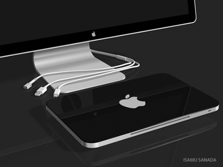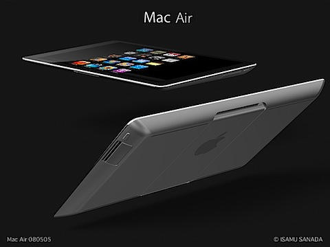 Tablet, nebo desktop? S Mac Air můžete mít obojí. Pokud si tedy umíte představit, že by úhlopříčka displeje vašeho stolního počítače měla 5,2 palce. Samozřejmostí je bezdrátová klávesnice, myš a další doplňky. Autor konceptu je Isamu Sanada.