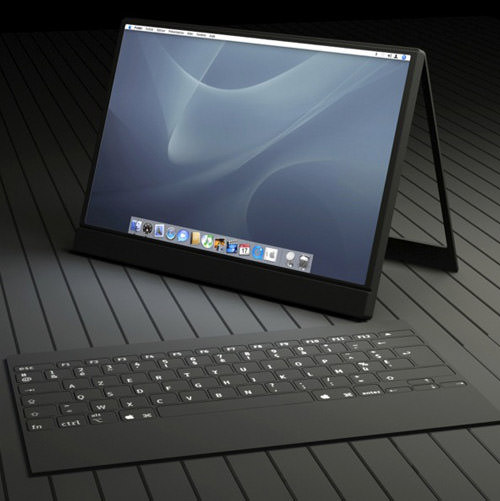 Mac Tab může sloužit nejenom jako samostatný tablet, ale také jako laptop s klávesnicí. Bezdrátovou, velmi tenkou klávesnicí. Yann Le Corroler, autor konceptu, slibuje snadnou přenosnost tabletu a pohodlné zacházení.