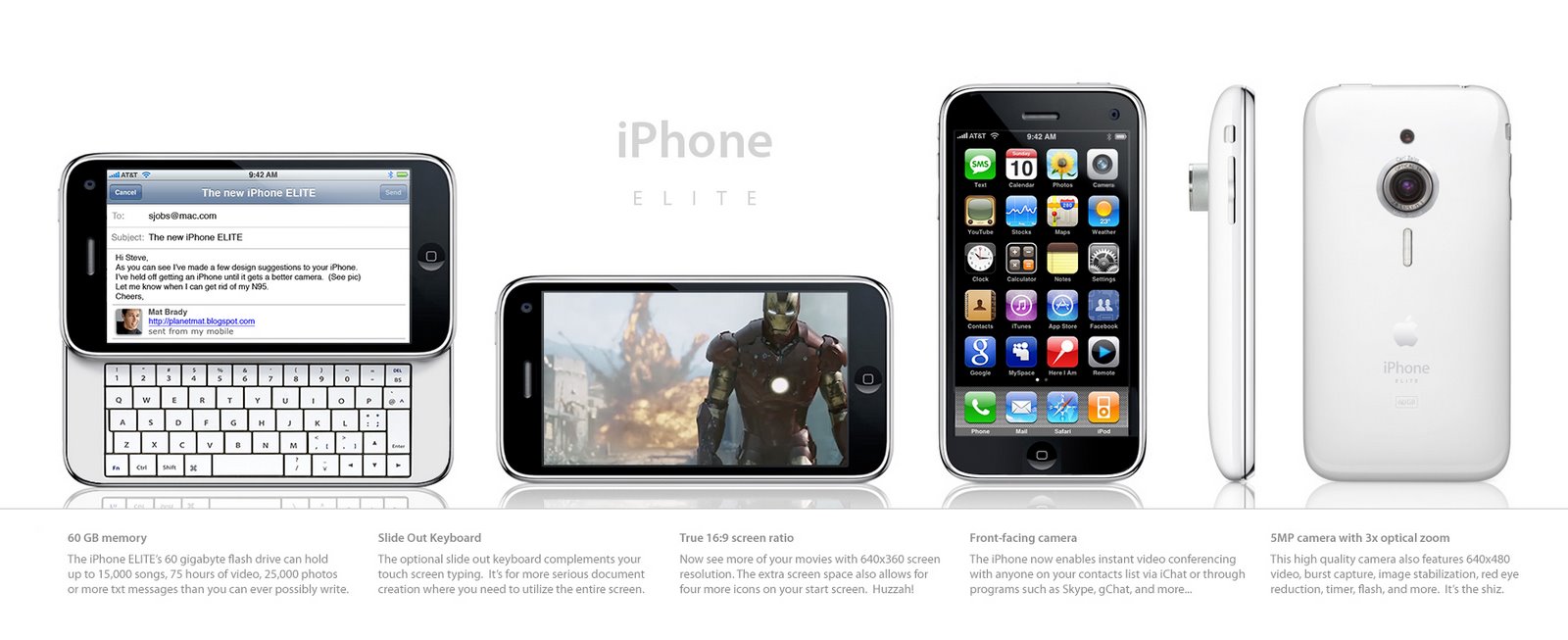 Vzpomínáte si na komunikátory, případně na některé z prvních telefonů s Androidem? Koncept iPhone Elite s vysouvací klávesnicí je dílem Mata Bradyho a kromě klávesnice disponuje i lehce netradiční zadní kamerou.