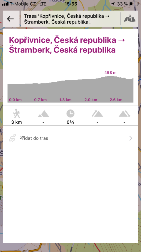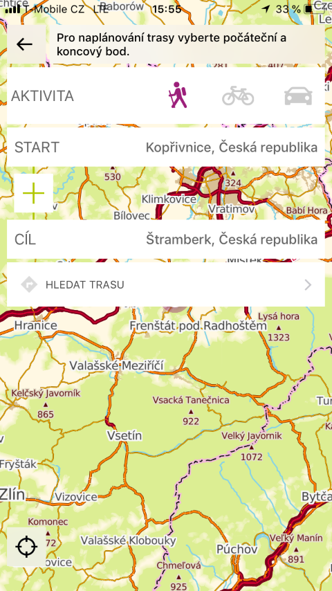 S největší pravděpodobností, teda pokud na 100 % nevíte, kam dnes jdete nebo jedete, si budete chtít trasu naplánovat. K tomu slouží jednoduchý nástroj Plánování trasy, ve kterém si můžete trasu jednoduše naplánovat. Jednoduše si vybereme aktivitu, poté v jakém místě chceme začít a samozřejmě, kde má naše túra skončit. Samozřejmě, jako téměř v každých mapách, si i v PhoneMaps můžete vybrat, jestli si chcete cestu okořenit a jít do cíle přes nějakou destinaci. Po stisknutí vyhledávání trasy se můžete podívat na její základní informace – převýšení, její délku (jak v jednotkách času, tak v jednotkách délky) a další.
