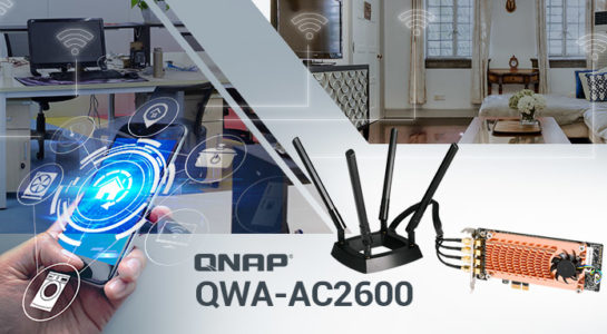 Tisková zpráva: QNAP dnes představil nový bezdrátový adaptér QWA-AC2600, který dokáže zvýšit flexibilitu při zavádění NAS a potenciálních dalších využití NAS. QWA-AC2600 je 2,4/5GHz bezdrátový adaptér typu DBDC (Dual Band Dual Concurrent), 4 x 4 MU-MIMO (více uživatelů MIMO) s rozhraním PCI Express a vybaven dvěma NIC Qualcomm QCA9984, které podporují rychlosti až 2533 Mb/s.