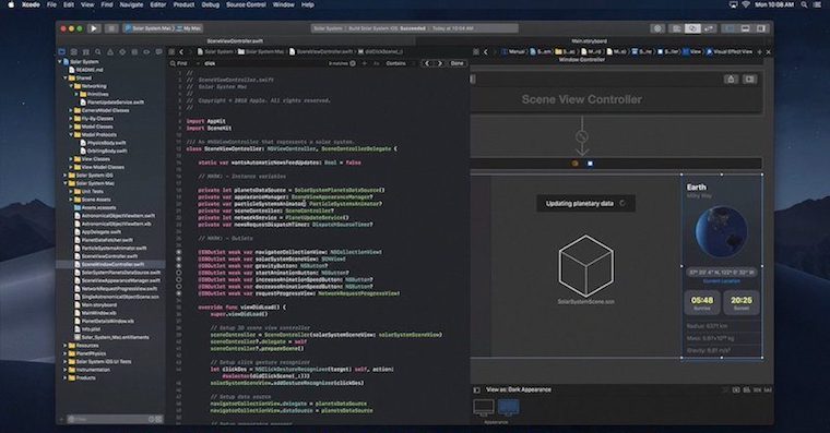 Takto tmavé prostředí macOS 10.14 a Xcode 10 vypadá:
