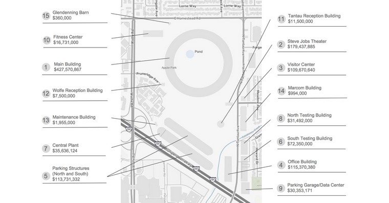 V blízkosti hlavní kruhové budovy si můžete všimnout laviček a stolů, které mají též sloužit zaměstnancům k odpočinku po práci či o obědové pauze v pěkném počasí. Na jednom záběru si pak můžete všimnout i jednoho zaměstnance Applu, který využívá k přepravě po Apple Parku jízdní kolo, která do něj Apple před nedávnem nakoupil právě pro tyto účely.