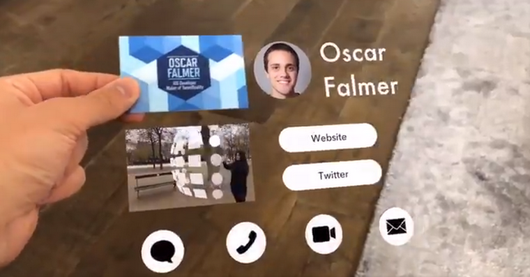 Vývojář iOS a ARKit jménem Oscar Falmer se na Twitteru pochlubil svým nejnovějším konceptem AR vizitky, která vypadá úžasně. Falmer pomocí ARKit 2.0 s funkcí image tracking vytvořil vizitku se všemi kontaktními informacemi, webovou stránkou, účty na sociálních sítích a dalšími informacemi pro digitální interakce.