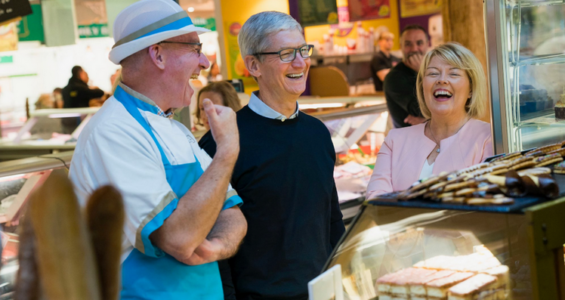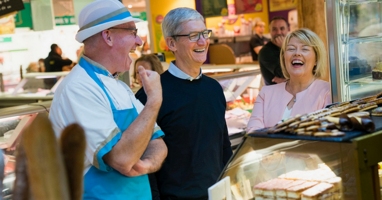 Cook zveřejnil na svém Twitteru fotografie z Irska. Vydal se konkrétně do města Cork, kde navštívil podle jeho slov „Apple rodinu a přátele“. Vystoupil také na The English Market v Corku a setkal se s mnoha fanoušky nakousnutého jablka.