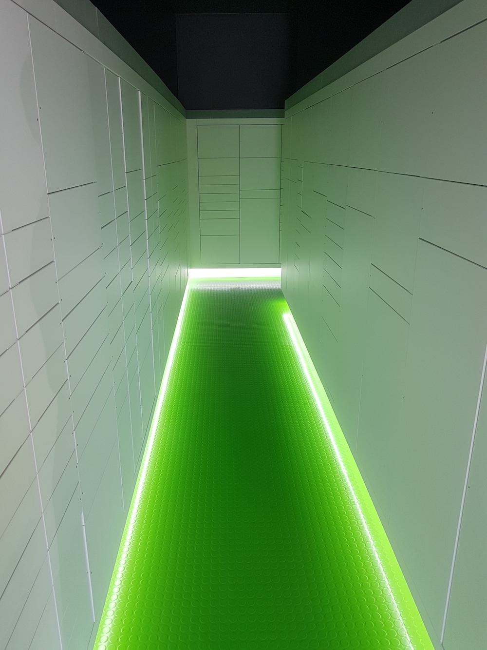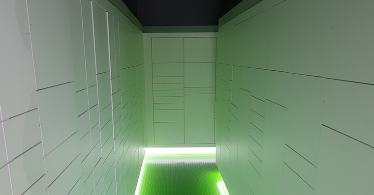 První inovace čeká na zákazníky už ve vstupním prostoru prodejny. Celé foyer bude obloženo speciálními a velmi odolnými deskami z neošetřeného vláknocementu, tzv. cembritem. Napínaný strop (moderní závěsný stropní systém skládající se z obvodového profilu a lehké PVC membrány) umožňuje navolit libovolnou barvu nasvícení interiéru. Do zdi bude poprvé zapuštěna obrazovka pro video chat, která nabídne vylepšenou kvalitu obrazu i zvuku. K vyzvednutí zboží nakupujícího doprovodí pulzní světlo v horní části úložných panelů namísto dosavadních LED diod v podlaze. Ta bude oproti původní provozovně pokryta výrazným protiskluzovým kaučukem. Zákazník bude moci s operátorem nově komunikovat i mimo obrazovku, a to díky mikrofonům přímo u slotů.