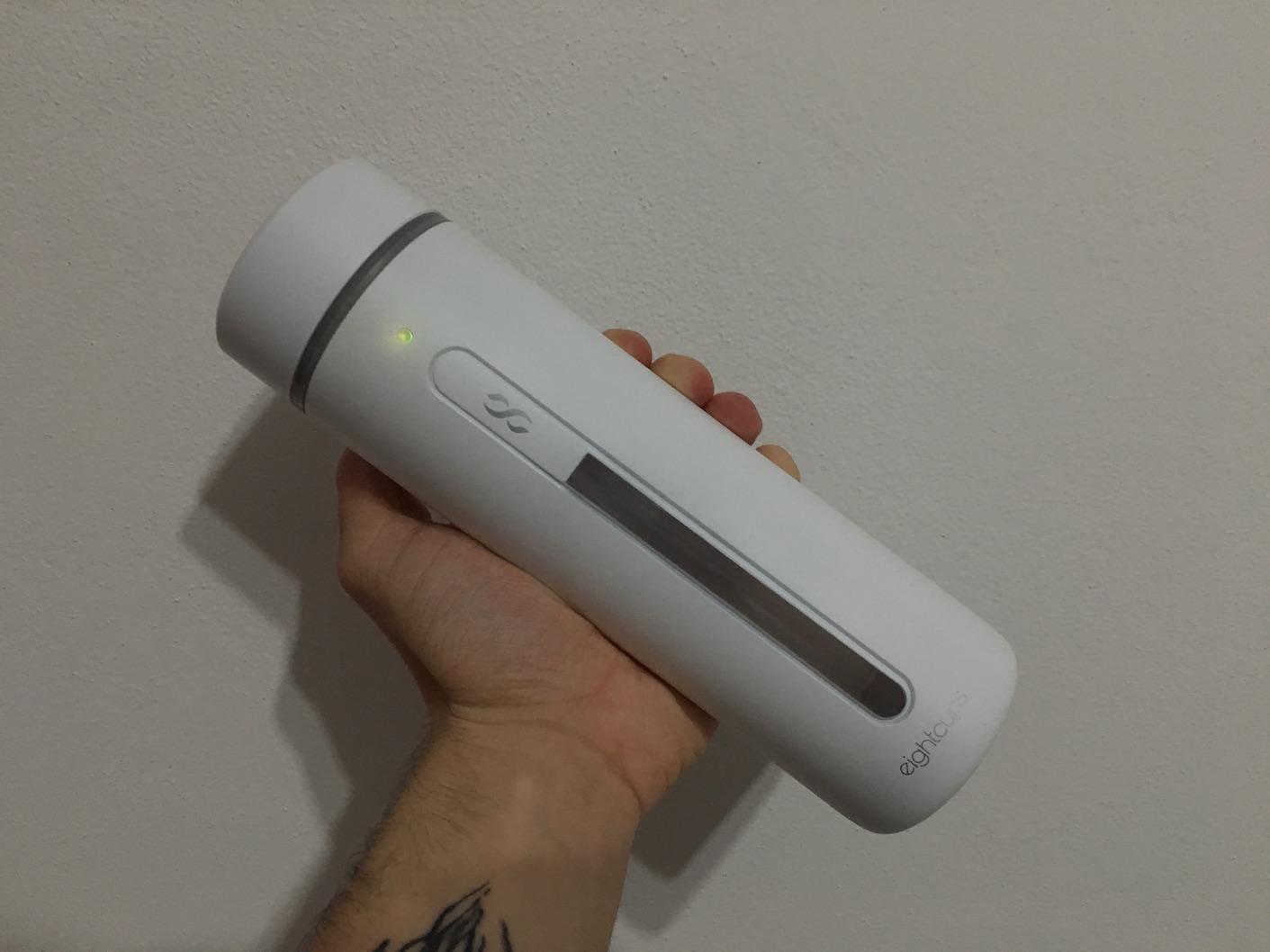 Samotná láhev je vyrobená z plastu, avšak v ruce plast působí opravdu kvalitně a rozhodně bych neměl obavy z případného pádu láhve na zem. Rozměry láhve jsou pro mě osobně naprosto perfektní, jelikož se láhev dobře drží v ruce a neklouže z ní. Na horní části se nachází závit společně s těsněním, nemusíte se tedy obávat, že by vám při přenosu láhev vytekla. Pokud se na Eightcups podíváme zepředu, tak si můžeme všimnout průhledného „okénka“, které nás informuje o tom, kolik je v lahvi tekutiny. Samozřejmě nesmí chybět branding Eightcups, to proto, abyste svým známým nemuseli říkat, jak se láhev jmenuje, jelikož poté, co ji uvidí, si ji rozhodně budou chtít zakoupit také.