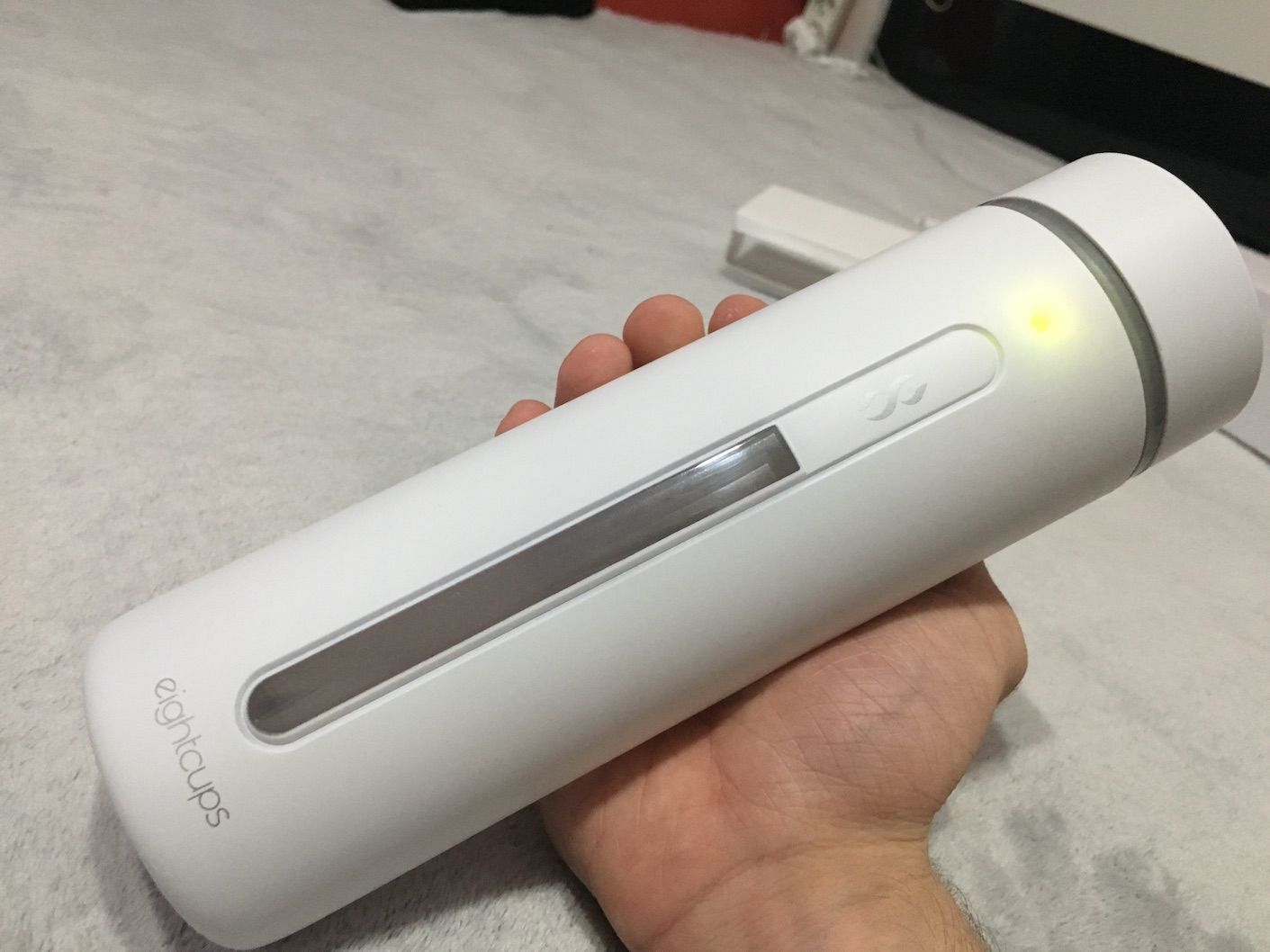 Jak už jsem psal v jednom z prvních odstavců, tak osobně problémy s pitným režimem nemám a snažím se jej dodržovat. Eightcups jsem tedy nějakou dobu používal osobně a přesvědčil jsem se, že jsem ohledně pitného režimu naučený vcelku dobře. Rozhodl jsem se tedy, že láhev předám mamce, která se sice pitný režim snaží dodržovat, avšak v práci se jí to moc nedaří. Láhev jsem tedy spároval s jejím telefonem, vysvětlil jsem základní funkce, co znamenají barvy diody (popsáno níže) a byl jsem zvědav, zda-li se něco změní. Po několika dnech se mamka podělila se zkušenostmi a byla jednoduše nadšená. O to více jsem byl poté já překvapený, když se mě zeptala, jak taková láhev může fungovat, když se nemusí nabíjet. V tom okamžiku jsem lehce strnul, jelikož jsem si v duchu říkal, kde na to přišla. Každopádně jsem jí zapomněl říct, že se láhev nabíjet musí, což jen potvrzuje tvrzení výrobce o výdrží baterie, která zvládne láhev pohánět až jeden celý týden.