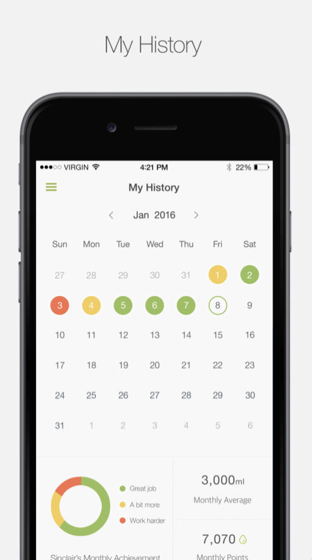 Aplikace Eightcups je pro vaši chytrou láhev dostupná jak pro iPhony v Apple Storu, tak pro telefony s Androidem v Google Play. Po prvotním spuštění aplikace se musíte registrovat a zadat základní informace o sobě, jako je například pohlaví, výška a váha. Poté si v aplikaci nastavíte čas, kdy ráno vstáváte, abyste hned ráno obdrželi první připomínku, že se máte napít. Poté se vám v aplikaci zobrazí doporučený denní příjem tekutin, pro mě osobně bylo vypočítáno, že bych měl denně vypít 2,5 litru vody. Poté už pouze stačí ve spodní části aplikace kliknout na Connecting my Eightcups a pomocí pokynů synchronizovat vaši láhev. Po spárování aplikace začne ihned zaznamenávat, kolik tekutin jste vypili. V aplikaci si poté můžete zobrazit, kolik už jste dnes vypili a také se můžete podívat na dlouhodobé přehledy. Zároveň si v aplikaci můžete nastavit režim mytí, pro případ, kdy byste láhev chtěli dát vymýt.