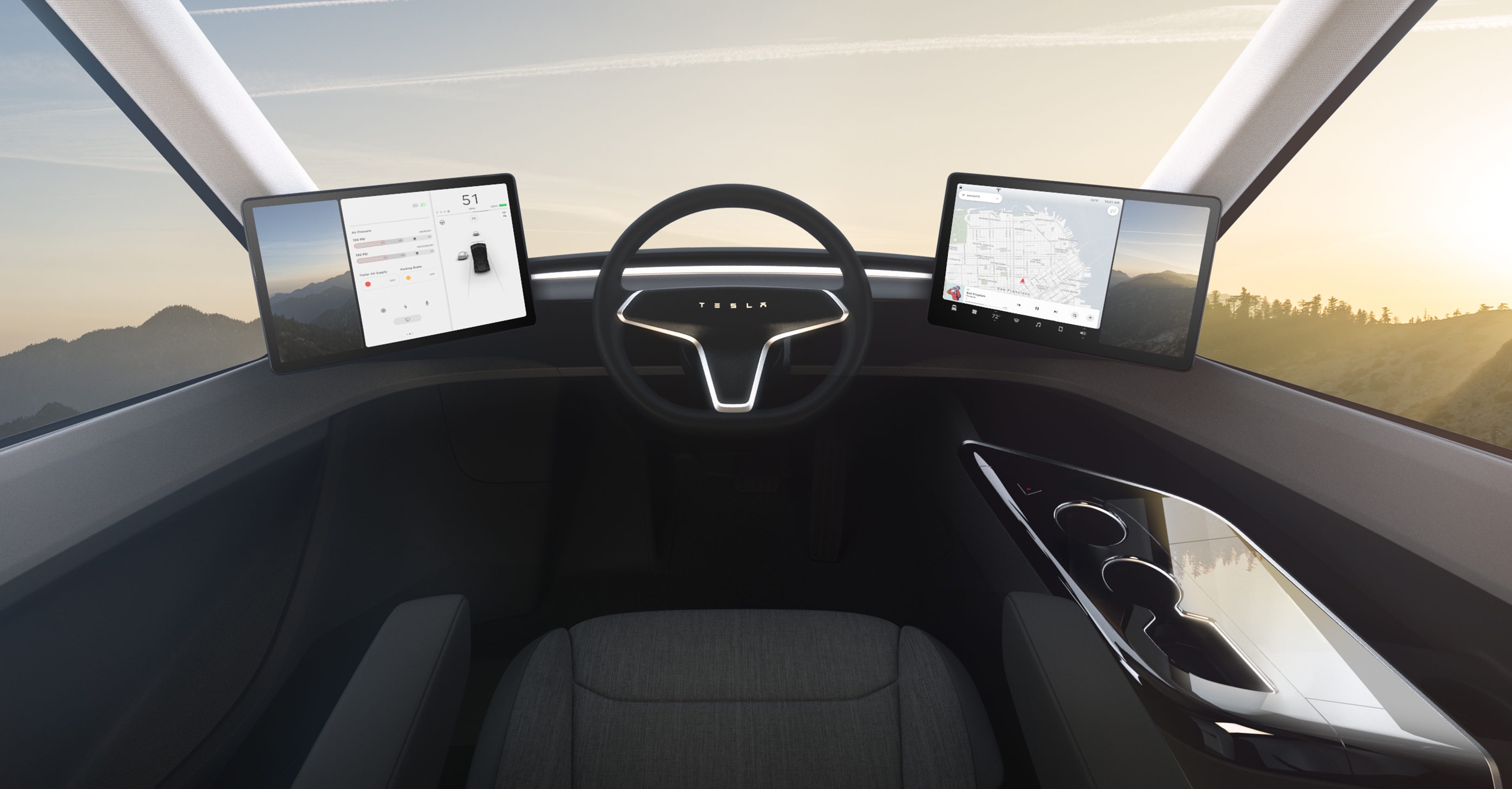 Zdá sa, že Tesla si pri vyhotovovaní interiéru ťahača Semi požičala pár nápadov od svojej vlajkovej lode v podobe Modelu 3. Podľa špekulácií je vo vozidlách použitý identický ventilačný systém, nakoľko patent naň drží sama Tesla.Dotykové 15-palcové displeje na palubnej doske sa tiež mimoriadne podobajú na tie z Modelu 3, no v prípade Semi ich samozrejme nájdeme vo dvojici. Rovnaký prípad nájdeme aj v prípade aerodynamických kľučiek na predných dverách.