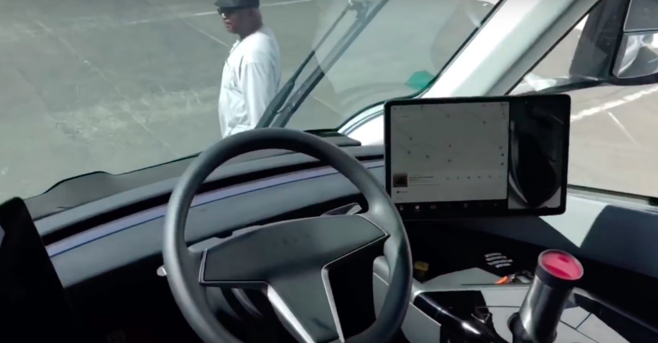 Video ukazujúce ťahač pridal na sociálne siete youtuber Andrew Black. Vozidlo sa takmer okamžite stalo predmetom záujmu nielen motoristických nadšencov, no jedna otázka sa vynára častejšie než tie ostatné. Na čo slúži záhadný tretí pedál v kabíne Tesly Semi? Pri pohľade na zaznamenané video je možné konštatovať, že zachytený ťahač Semi je pravdepodobne v skúšobnej komerčnej prevádzke. Tesla sa v tomto prípade spoliehala na jednoduchý dizajn nielen z vonkajšej strany vozidla, ale aj v prípade palubnej dosky a vnútorných komponentov.