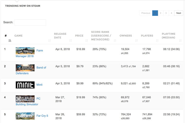 Spoločnosť Valve sa v poslednej dobe potýka s ďalším netradičným problémom. Niektorým developerom robia vrásky na čele nedokonalé merania predajnosti titulov, ktoré mala na svedomí funkcia SteamSpy. Podľa zdrojv bola táto možnosť nepresná a skresľujúca, čo vyústilo do iniciatívy firmy Valve, ktorá túto možnosť stiahla z obehu. Informácie naznačujú príchod oficiálnej možnosti na štýl SteamSpy, no v prípade Valve môže byť spustenie funkcie mesiace, či roky vzdialené. S dômyselným riešením sa vytasil jeden z developerov titulu The End is Night, ktorý má našiel odpoveď na túto problematiku.