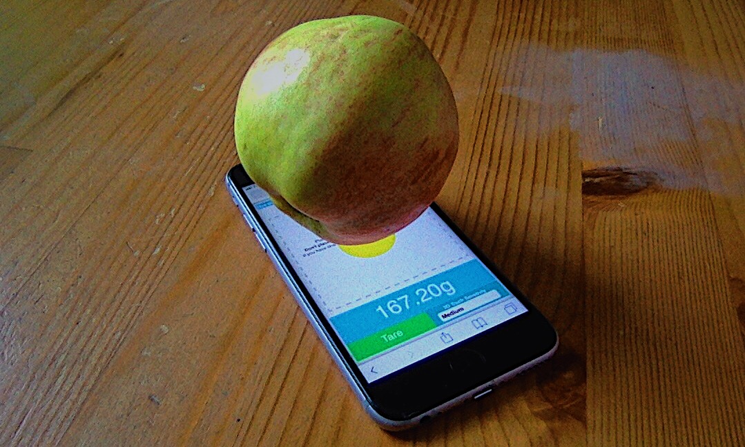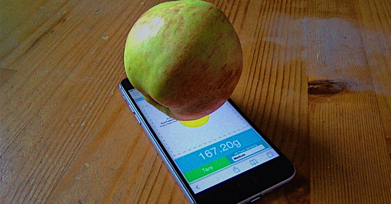 Každopádně nemůžeme vážit úplně všechno. Tím, že má iPhone kapacitní displej, tak na displeji zaregistruje pouze vodivé objekty. Mimo váš prst je vodivé například jablko. Taktéž se doporučuje, aby se objekt displeje dotýkal pouze jedním bodem. V případě, že se objekt bude dotýkat více body, tak se může stát, že bude měření nepřesné.