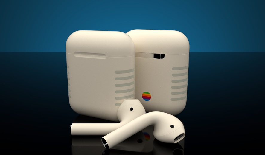 Originální Macintosh jste již určitě mnohokrát viděli. Jedná se totiž o stroj, který již inspiroval spoustu výrobců převážně příslušenství k tvorbě doplňků právě s jeho designem. K dostání jsou tak například již i kryty na celou řadu iPhonů, které jsou zbarveny do obligátní béžové barvy s šedými pruhy znázorňujícími průduchy a duhovým jablkem, které Apple používal jako logo v letech 1977 až 1998. A i nová úprava AirPods z tohoto designu vychází.