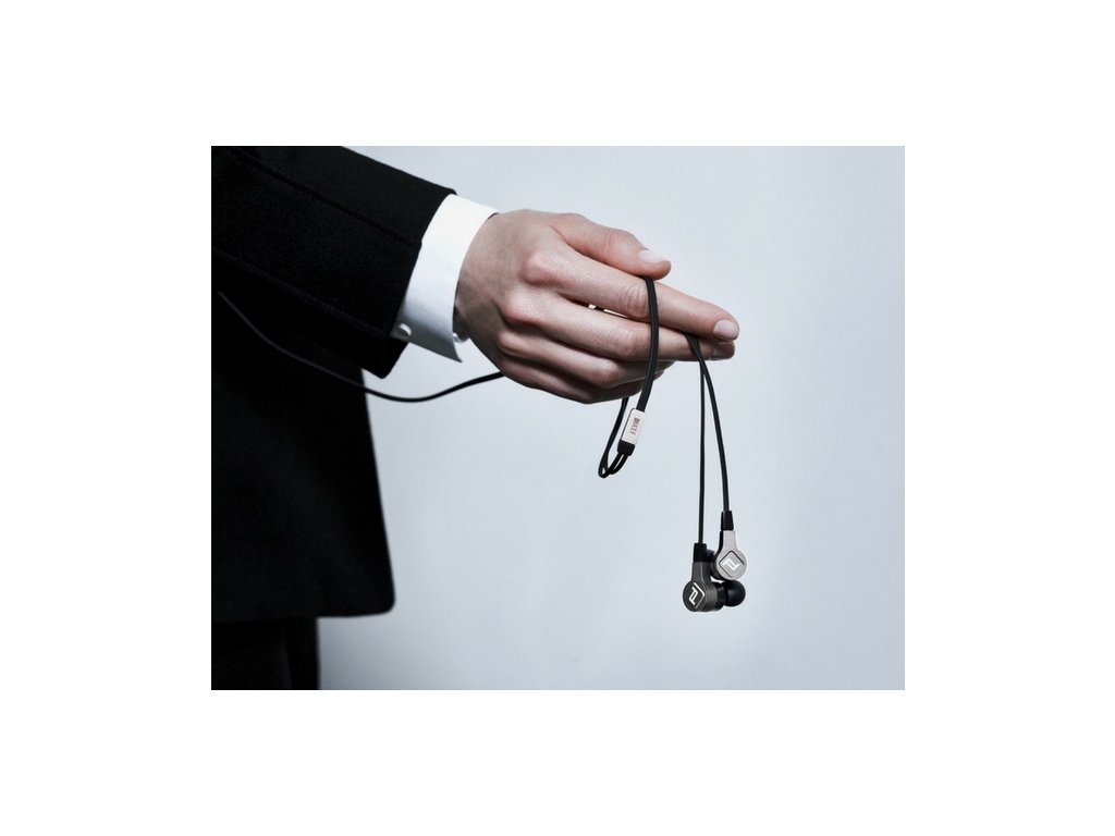 Sluchátka nabízí také možnost přizpůsobit si jejich ergonomii, a to jednak třemi velikostmi gumových špuntů do uší, tak i možností natáčet samotný špunt vůči zbytku měniče kolem své osy a tak si určit kam přesně povede kabeláž přímo z vašeho ucha. To však není vše, co sluchátka nabízí. V případě, kdy vám totiž dojdou baterie nebo se zkrátka rozhodnete, že vám stačí poslouchat přes kabel, jednoduše odepnete samotné měniče a špunty z kabelů a připojíte k nim kabel nový, tentokrát zakončený klasickým 3,5 mm jackem. Ten mimochodem můžete zapojit také do adaptéru pro levý a pravý kanál, jenž je součástí balení.
