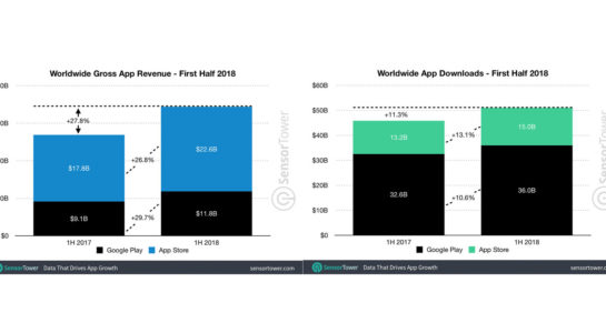 V bitvě o nejlepší obchod s mobilními hrami a aplikacemi má Apple obrovský náskok. Během prvního pololetí letošního roku utratili zákazníci v App Store téměř dvojnásobek toho, co uživatelé Androidu v Google Play. Ale výsledná čísla jsou pozitivní pro obě společnosti, jelikož u obou dochází pravidelně k růstu.