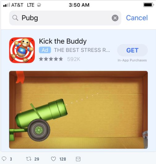 Konkurenční boj na poli mobilních aplikací nutí vývojáře k různým taktikám a placení reklamy je samozřejmě jednou z nich. A nutno podotknout, že se jedná o zcela legitimní možnost, jak svou aplikaci propagovat a zviditelnit. V pořádku však už není způsob, jakým a kdy se dané aplikace zákazníkům zobrazí. Bylo by naprosto pochopitelné, kdyby se jako reklamní aplikace zobrazilo například PUBG MOBILE při hledání „battle royal“ nebo třeba FIFA Football při zadání slova „fotbal“ do vyhledávače. Ale zobrazit největšího konkurenta při požadavku na vyhledání konkrétní aplikace jejím přesným názvem, to je jako kdybyste šli do Starbucks a prodavač vám nejdříve nabídl kávu z Costa Coffee a až poté jejich vlastní.