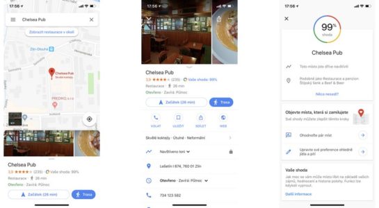 Google aktualizoval iOS verzi aplikace Google Maps, aby přidal novou funkci Vaše shoda, která vám prozradí, jak moc se vám může místo líbit na základě vašich zájmů, hodnocení a historie polohy. Samozřejmě je možné funkci vypnout. Funkce Vaše shoda se nejprve dostala na Android verzi aplikace Google Maps, ale od dnešního dne je dostupná také v iOS verzi. Dále poslední aktualizace mapové aplikace od Googlu přináší změněný seznam trendů na kartě Prozkoumat.