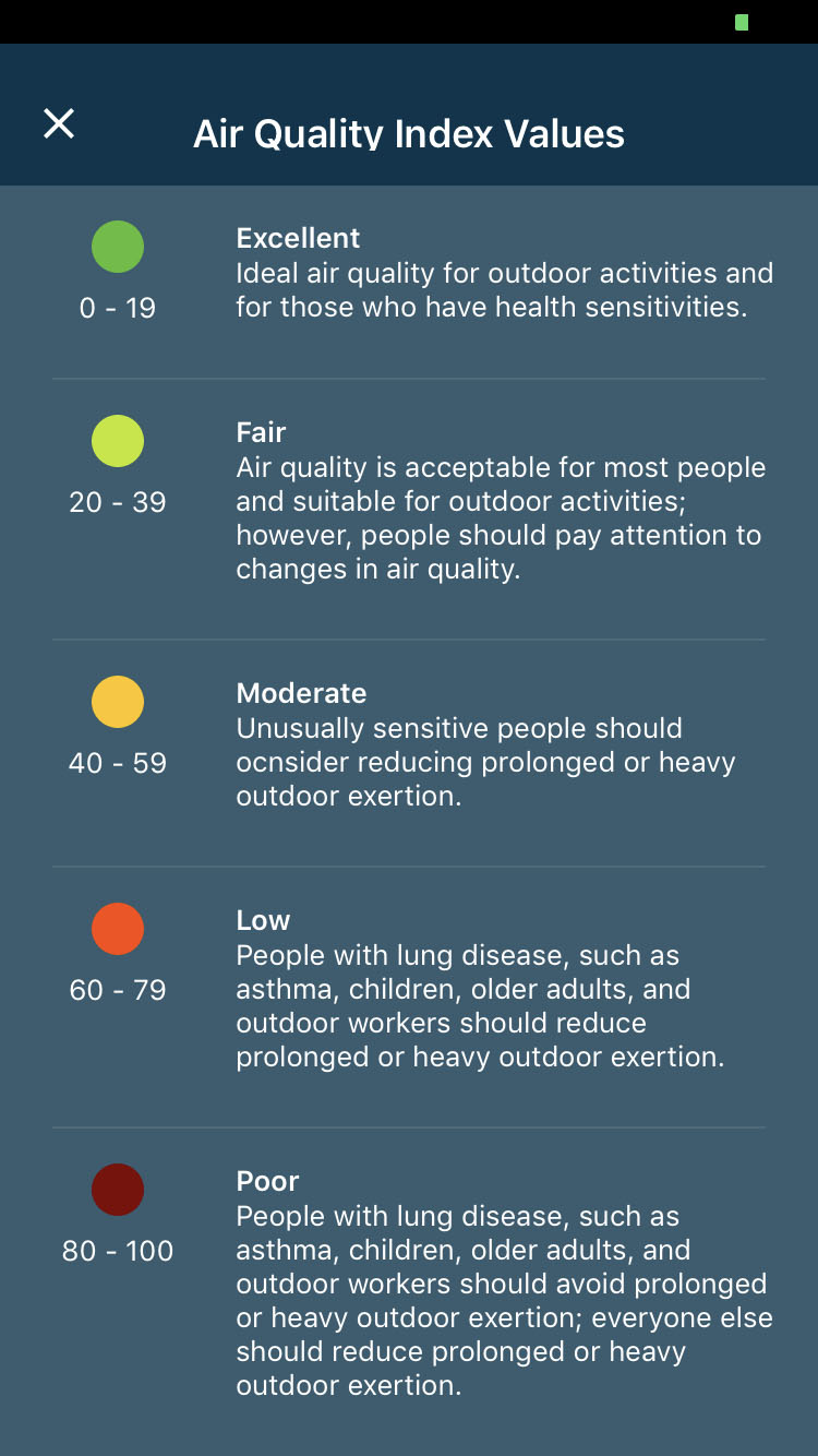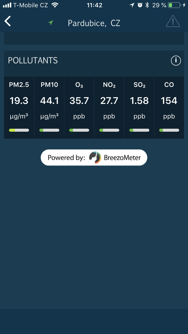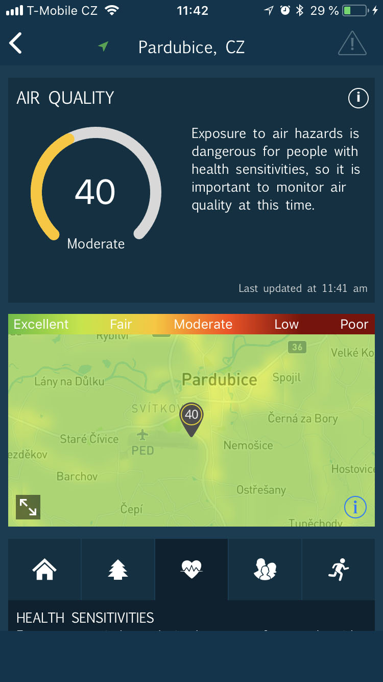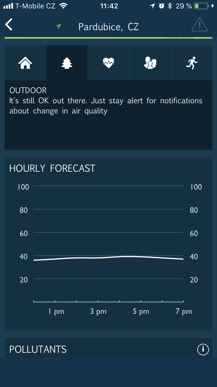 Na konec je potřeba zmínit ještě dvě zajímavé funkce. Pro milovníky blesků je zde pro ně speciální záložka. Ta vás informuje právě o nejbližším výskytu blesků a případně můžete přepnout na již zmíněnou mapu. Druhou velmi zajímavou vychytávkou je informace o kvalitě vzduchu. Je zobrazeno jedním z pěti možných stupňů od Excellent až po Poor, včetně popisku a informacích o možných zdravotních komplikací. Například je doporučeno lidem s citlivým zdravým netrávit venku mnoho času a podobně. Je možné si zobrazit i hodinovou předpověď a přesnou hodnotu škodlivých látek v ovzduší.