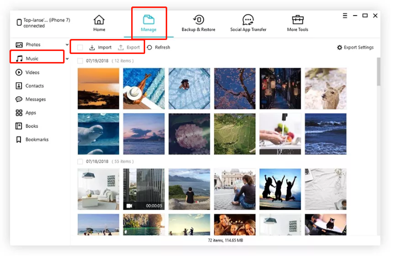 - Obvyklý strach ze ztráty hudby, kterou máte uloženou v iPhone, při synchronizaci nových skladeb, je s iCareFone eliminován.