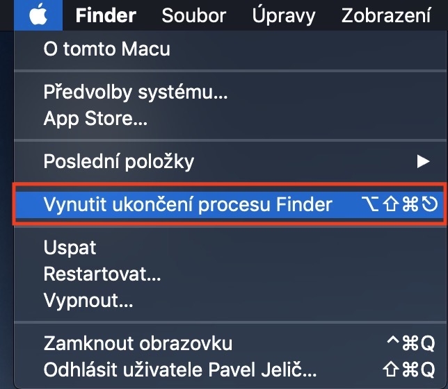 Pokud je na vás postup výše příliš zdlouhavý, můžete pro restartování Finderu využít klávesové zkratky. Na ploše nebo v aktivním okně Finderu stačí stisknout klávesovou kombinaci Command + Option + Escape. Tato klávesová zkratka vyvolá jakéhosi „správce úloh“, ve kterém stačí najít Finder, označit jej a stisknout Spustit znovu.