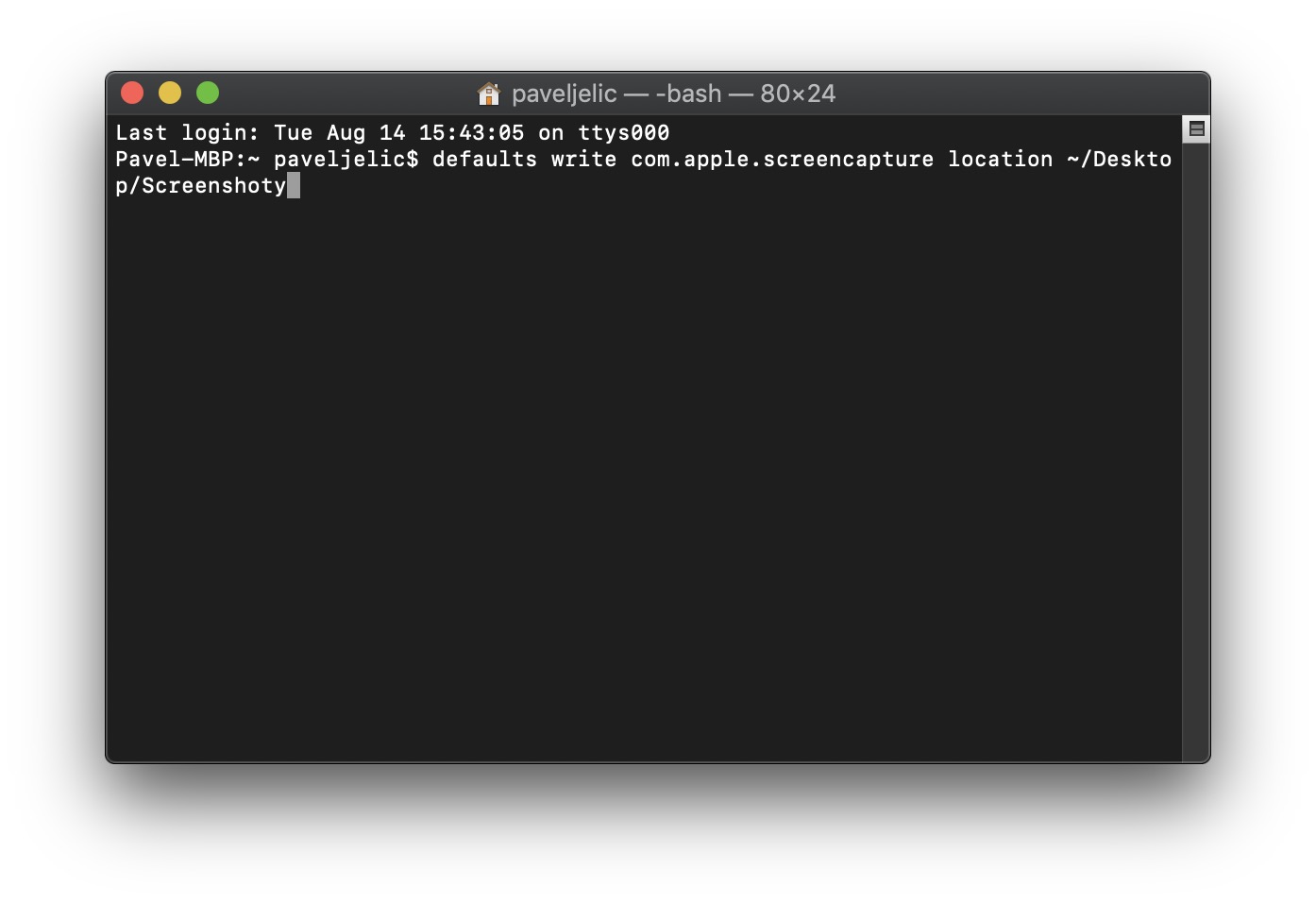 defaults write com.apple.screencapture location ~/Desktop/Screenshoty