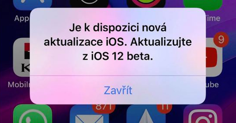 Mnoho uživatelů, kteří na svých zařízení mají nainstalovanou nejnovější betu iOS 12, se v posledních hodinách potýkají s nepříjemným problémem. Na jejich iPhonu či iPadu jim vyskakuje okno s informací o dostupnosti nového updatu, přestože žádný takový není. Konkrétně je uvedeno „Je k dispozici nová aktualizace iOS. Aktualizujte z iOS 12 beta“, jak můžete vidět v galerii.