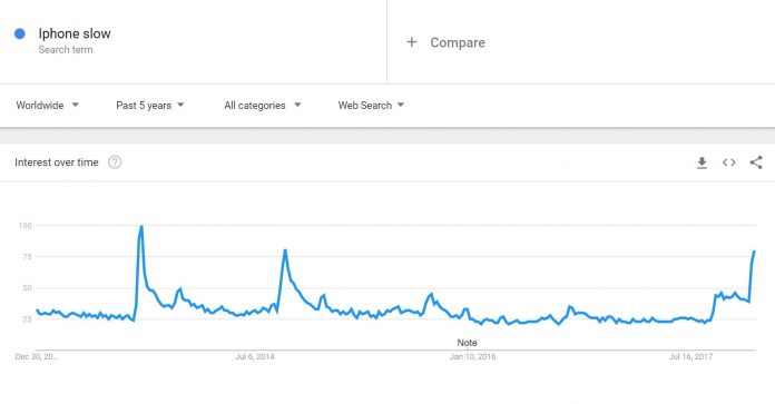 Důkaz o zpomalení iPhonu a počet vyhledávání na Googlu: