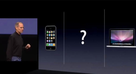 V roce 2010 Apple ukázal první iPad snímkem, který jej představoval jako produkt mezi smartphonem a přenosným počítačem, tedy třetím zařízením. A aby těch trojek nebylo málo, tak iPad byl k dostání ve třech variantách – 16, 32 a 64 GB. iPad 2? Podle Jobse se jednalo o tenčí, lehčí a rychlejší verzi předchozího modelu. Zlepšil se tedy ve třech hlavních oblastech.