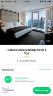Pokud potřebujete pouze najít ubytování, aplikace trivago je jednou z nejlepších možností. Aplikace sama o sobě ubytování nenabízí, jde spíše o jakýsi vyhledávač nabídek různých stránek. Její používání je opět velmi jednoduché, stačí pouze zadat město, kde chcete ubytovat a počkat na výsledky. Samozřejmě si je můžete dále filtrovat podle ceny, kvality hotelu, vzdálenost například od centra města a dalších parametrů. Po vybrání hotelu se vám zobrazí nabídky všech portálů, seřazené podle ceny. Nestane se tak, že byste zaplatili více pouze proto, že jste opomněli zkontrolovat jednu z deseti stránek, které ubytování nabízí.