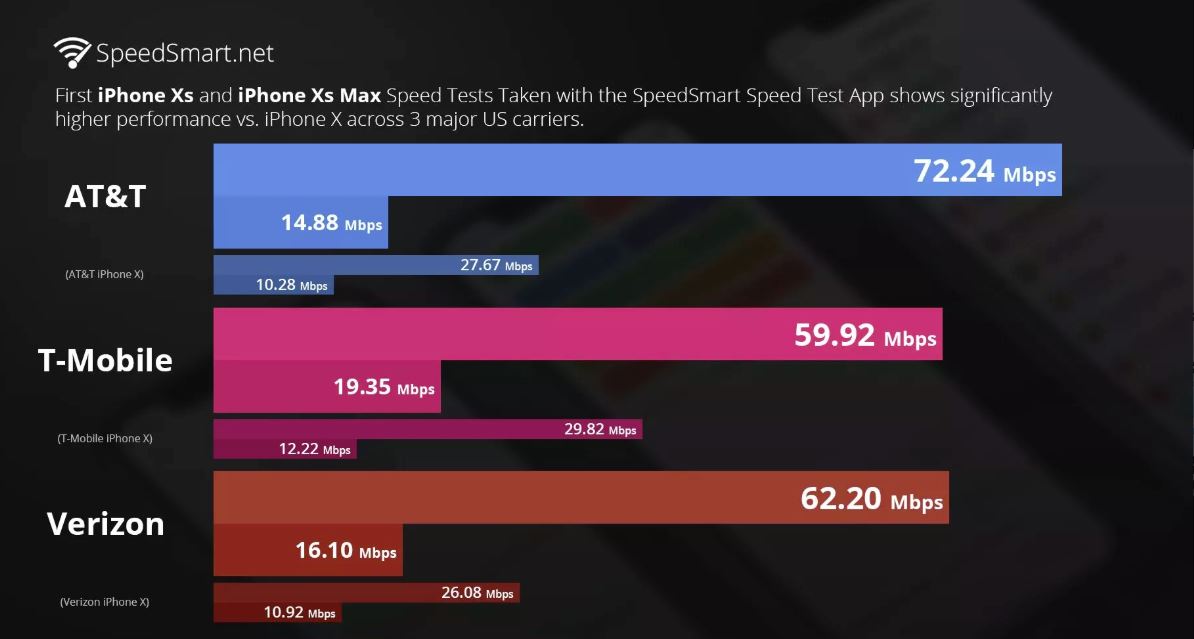 Server testoval rychlost u tří největších telefonních operátorů ve Spojených státech – AT&T, T-Mobilu a Verizonu. Data poté porovnával s loňským iPhonem X a první výsledky naznačují obrovský nárůst rychlosti. Hlavním důvodem je implementování technologie 4×4 MIMO, která je už nějakou dobu využívána v některých Android telefonech. Apple se konečně také rozhodl ji začít využívat, což je rozhodně dobrá zpráva.