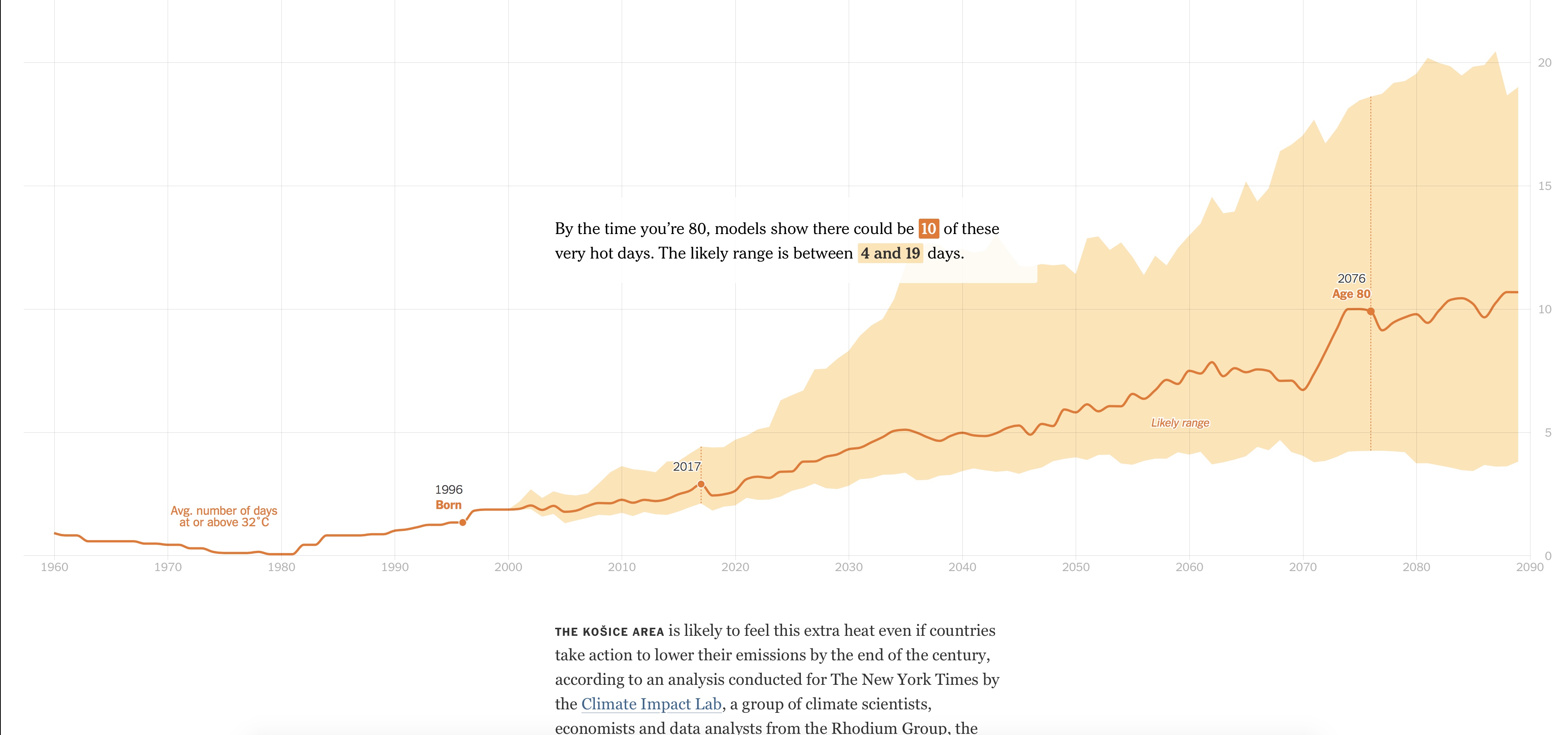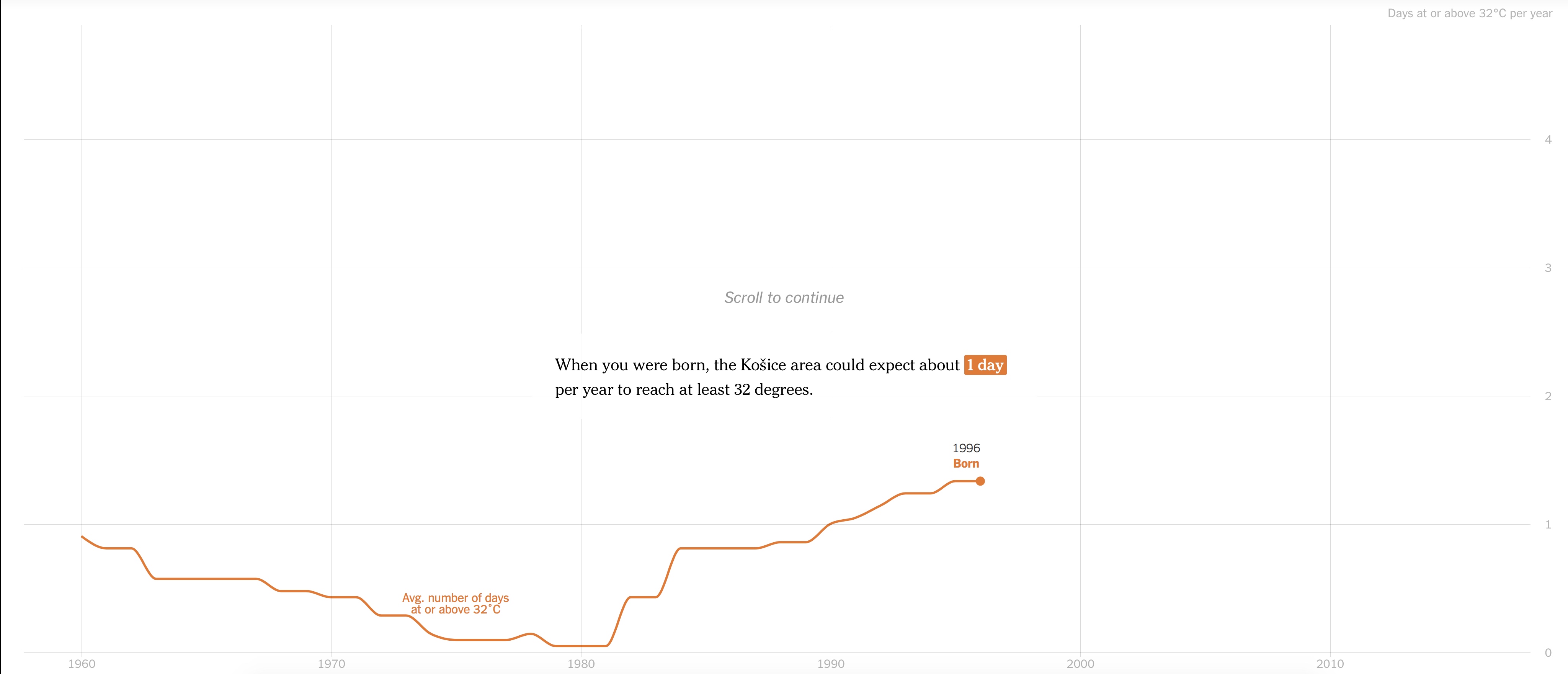 Globálne otepľovanie a klimatické zmeny predstavujú celosvetový problém už bez mála dekádu. Naša Zem zažíva čoraz väčšie výkyvy a teplotné zmeny, aké nemajú v novodobej histórii obdoby, no nebudeme vás nudiť obohratými témami, s ktorými sa stretávame všade takmer každý deň. Namiesto toho vám ukážeme, ako sa môžete aj vy presvedčiť o týchto javoch priamo u vás doma. Denník New York Times totiž prináša nástroj, vďaka ktorému je možné si overiť a následne porovnať postupné zvyšovanie teploty vo vašom rodisku, ale aj kdekoľvek inde na svete. Táto funkcia vám ukáže presné výpočty, grafy a štitstiky, vďaka ktorým sa dozviete ako sa zmenila klíma vo vašej domovine od čias kedy ste sa narodili.