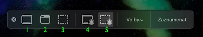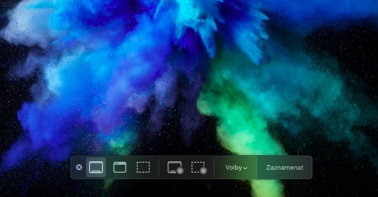 Donedávna jsme byli zvyklí na kombinaci command + shift + 3 pro screenshot celé obrazovky a command + shift + 4 pro screenshot námi vyznačeného místa. Nový operační systém však přinesl novinku ve formě klávesové zkratky command + shift + 5, která vyvolá nabídku jak pro screenshoty, tak i pro záznam obrazovky.