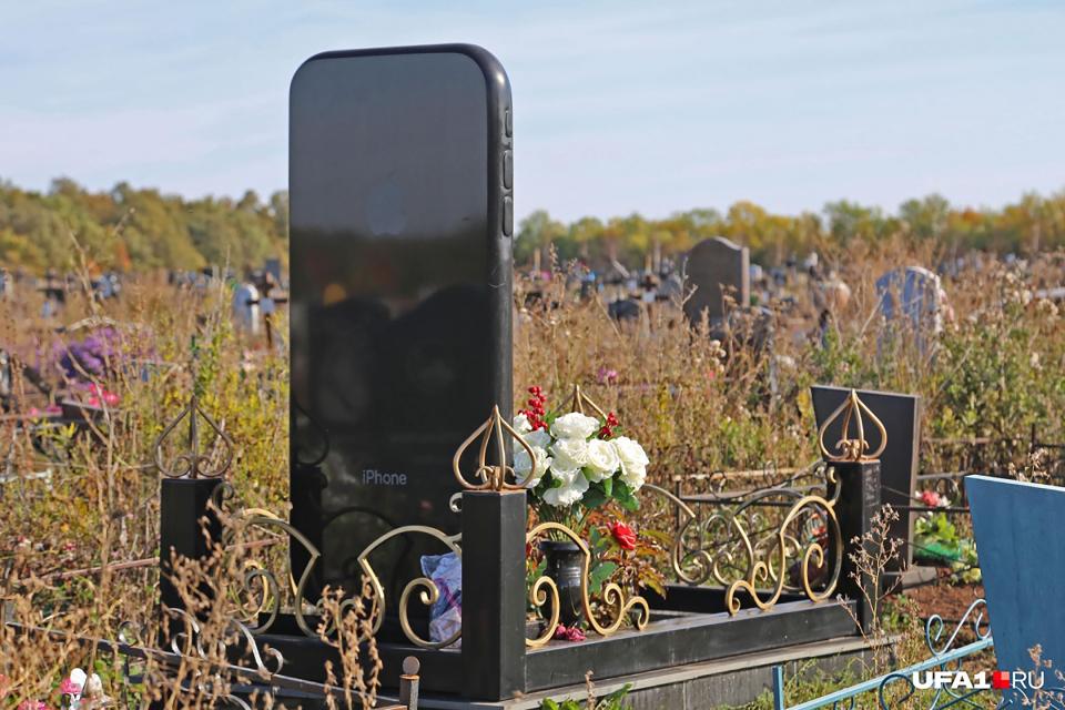 Náhrobek se nachází v ruském městě Ufa a má připomínat pětadvacetiletou Rusku, která zemřela zhruba před dvěma roky z neznámých příčin. Rita, jak se dívka jmenovala, byla velkou fanynkou Applu a iPhonů, kvůli čemuž se její otec dva roky po její smrti rozhodl, že její hrob nechá zkrášlit netradičním náhrobkem. Ten je vyrobený s černých čedičů a má tvar 4,7” iPhonu 7, od kterého se však liší zapuštěnou čočkou fotoaparátu do těla. Přední stranu pomníku, na které je velký displej, zdobí vyobrazení dívky s jejím jménem, datem narození a datem úmrtí. Na zádech náhrobku pak naleznete klasické logo nakousnutého jablka a fotoaparáty, boky zdobí klasická tlačítka.