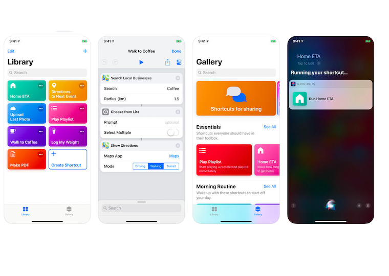 V galerii aplikace Zkratky najdete přednastavené postupy, rozdělené do kategorií, jako je Ranní rutina (upozornění na čas odchodu do práce či školy, nastavení připomínky po příchodu do práce nebo třeba naplánování hlavních úkolů), Rychlé zkratky (rychlé vytáčení, přehrání playlistu, navigace domů a řada dalších), nebo zkratky, spojené s Apple Music či platformou HealthKit.