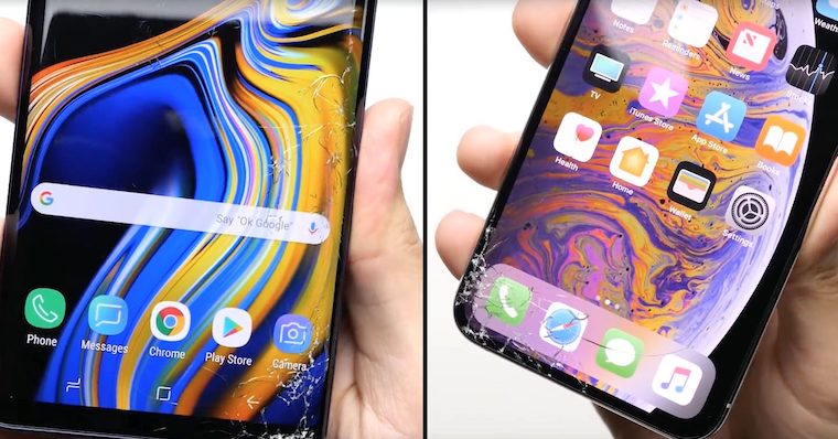 Přesně na tuto otázku se pokusil odpovědět YouTube kanál PhoneBuff, který proti sobě postavil iPhone XS Max a konkurenční vlajkovou loď od Samsungu – Galaxy Note9. I ten se totiž může pochlubit skleněnými zády, které mohou být náchylné na rozbití. Oba telefony byly vystaveny sérii testovacích pádů, které měly odhalit jejich odolnost. Ještě, než se pustíme do rozboru pádů, si však test přehrajte na videu pod tímto odstavcem.