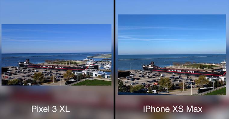 Redaktoři postavili proti Pixelu 3 XL nový iPhone XS Max. Zatímco Pixel disponuje jednoobjektivovým 12,2 MPx fotoaparátem, iPhone XS Max se chlubí klasickým duálním fotoaparátem s 12 MPx na obou objektivech. Absenci jednoho objektivu pak Google dohání umělou inteligencí a pokročilými softwary. Podle slov Googlu by tak neměl být problém například ani se zoomováním fotek. Pixel sice disponuje pouze digitálním zoomem, nicméně jeho software by měl při přibližování zachycovat snímky, ze kterých následně složí výslednou fotku. Díky tomu by tak měly být i přes digitální zoom fotky vlemi kvalitní.