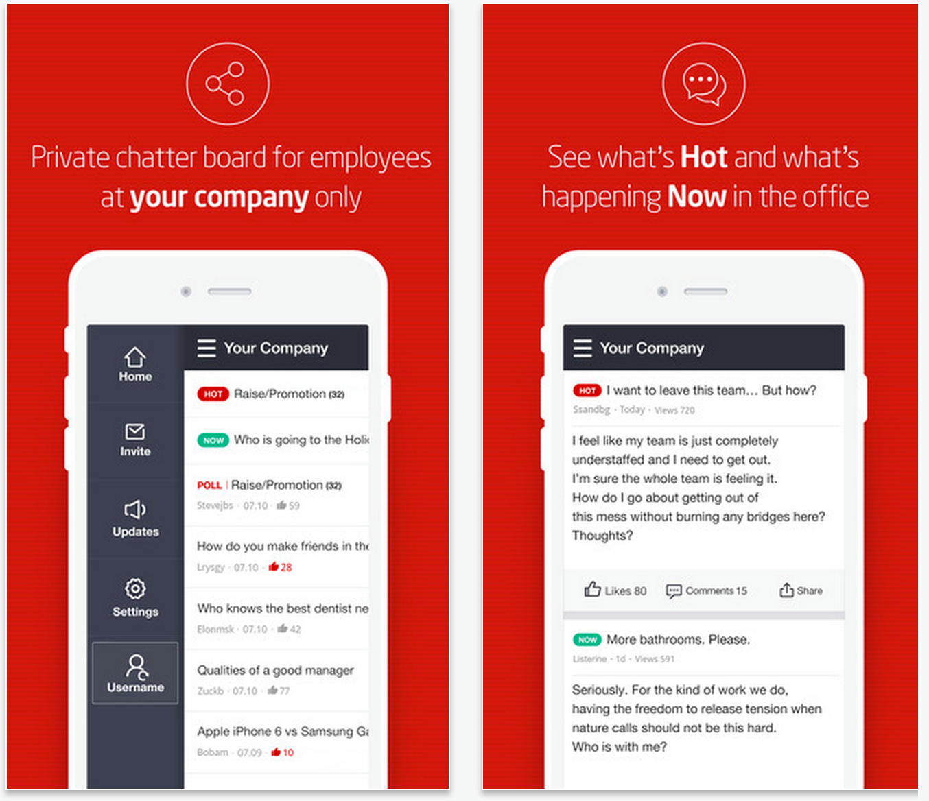Z 256 zaměstnanců Applu, kteří se průzkumu zúčastnili, uvedlo 22 %, že zruší své facebookové účty, zatímco 20 % přiznalo, že na Facebooku vůbec nejsou. Blind je aplikace pro anonymní sociální síť, určenou profesionálům zejména z technologického průmyslu, kteří z jakýchkoliv důvodů nemohou nebo nechtějí komunikovat prostřednictvím běžných sociálních sítí. Ve společnosti Apple využívalo aplikaci Blind zhruba sedm tisíc zaměstnanců, její členská základna je dále tvořena například 44 tisíci zaměstnanci Microsoftu nebo třeba 30 tisíci zaměstnanci společnosti Amazon.