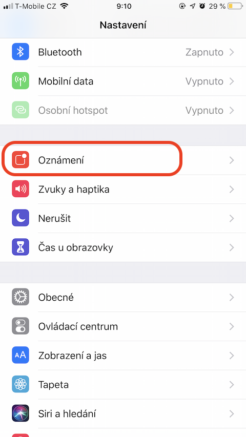 - Klepněte na Oznámení.