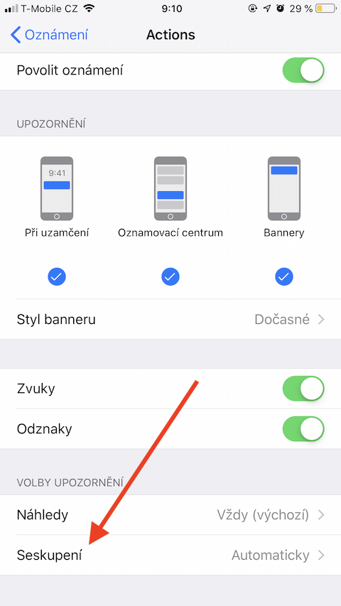Seskupování notifikací podle aplikace