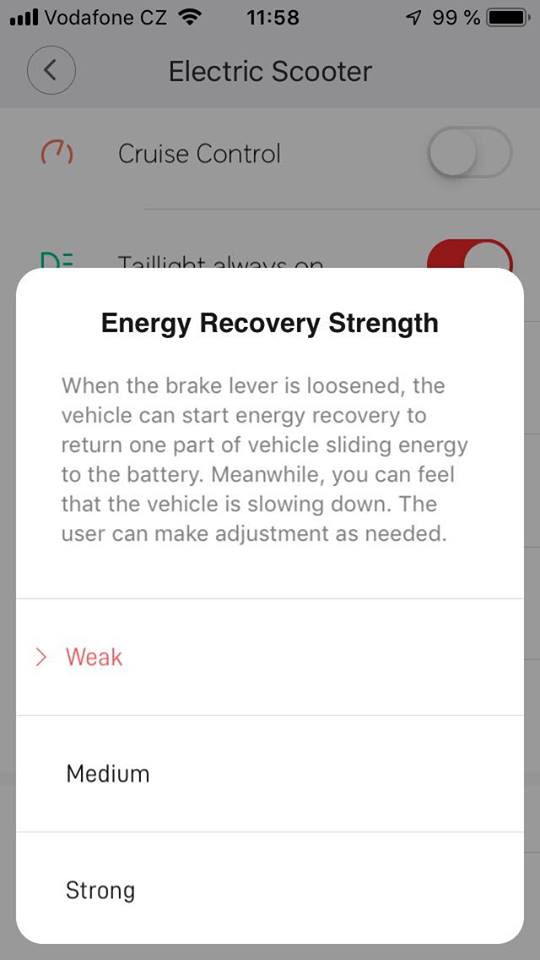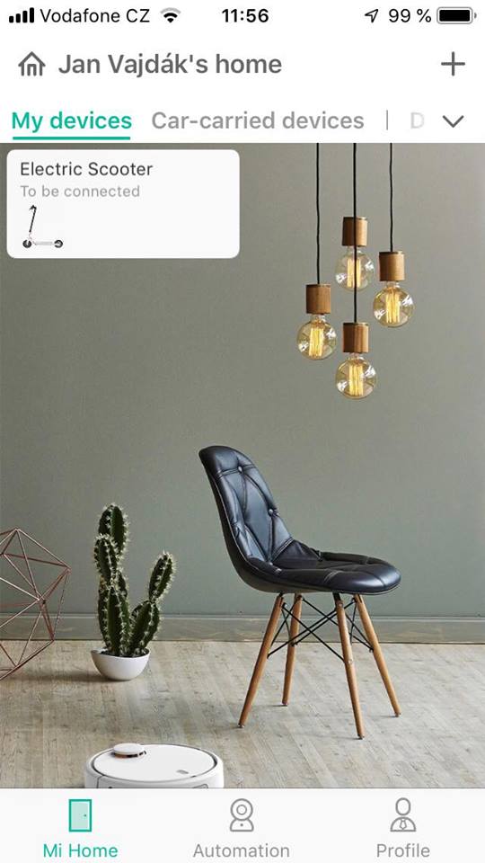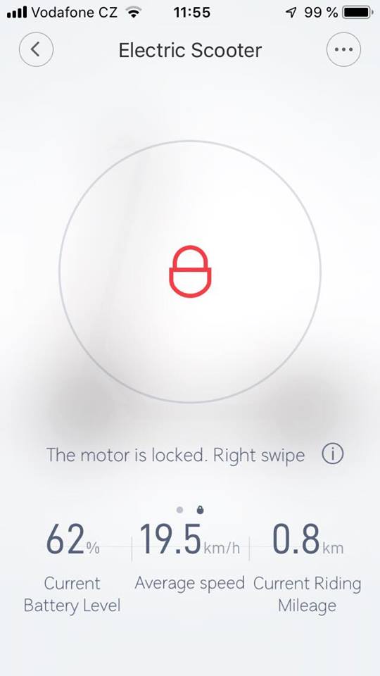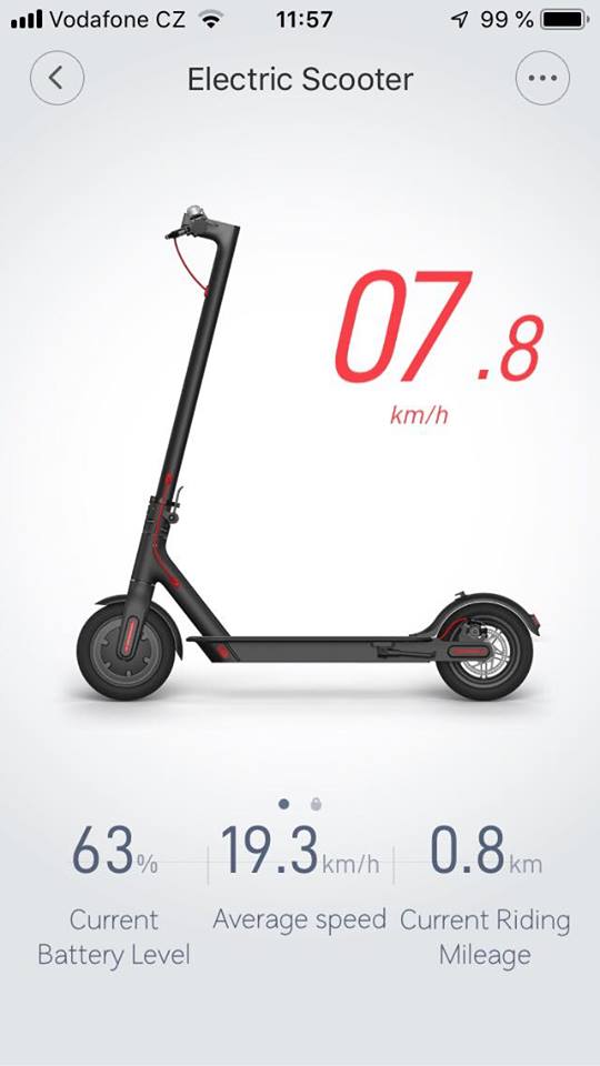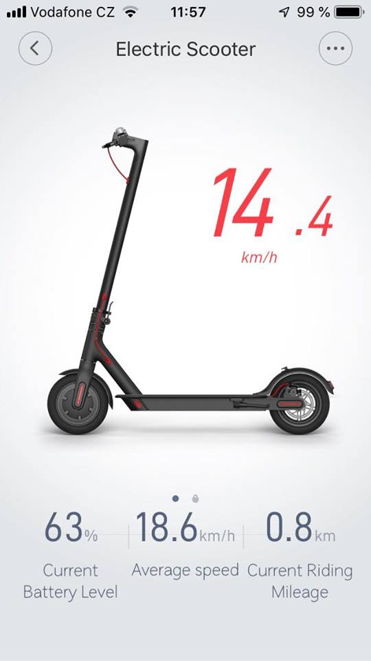 Koloběžku je možné spárovat s aplikací Mi Home. Aplikace na iOS funguje zcela bezproblémově, na konkurenční platformě je komunikace mezi smartphonem a koloběžkou docela dost velká katastrofa, o čemž vypovídá i velmi rozporuplné hodnocení v Google Play. Aplikace samotná je poměrně přehledná. Kromě základních informací, jako je například výrobní číslo, nabídne data o aktuální rychlosti, průměrné rychlosti, celkového počtu najetých kilometrů, údaje o současném stavu baterie nebo dokonce hodnoty aktuální teploty stroje. Jednoduchým swipnutím vlevo v hlavním menu pak koloběžku uzamknete.