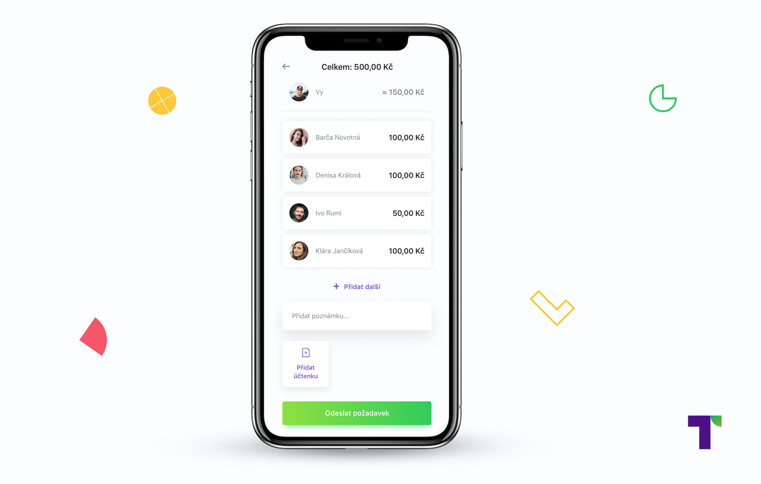 „Split skvěle řeší peníze mezi kamarády. Už žádná hotovost nebo převody z účtu na účet a promlčené dluhy,“ vysvětluje Michal Šmída, zakladatel a CEO Twista. Oproti konkurenčním řešením Twisto dává možnost splitnout – v řeči generace mileniálů – účet i mezi „netwistaře“. Twisto se navíc zapomnětlivým kamarádům automaticky taktně připomene.