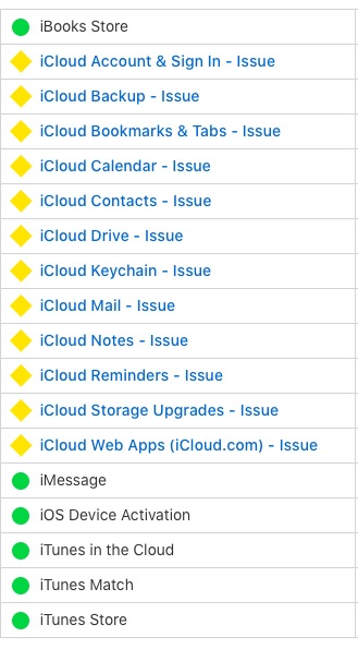 Zaznamenali jste v posledních hodinách problémy s připojením k iCloudu, Najít mé přátele, Najít iPhone či dalším službám Applu? Nebojte se, nejedná se o vaší chybu. Včera večer totiž začal Apple u spousty svých služeb zaznamenávat problémy, což potvrdil aktualizací své stránky o stavu systému. Ta nyní svítí u mnoha služeb žlutě, což značí problémy.