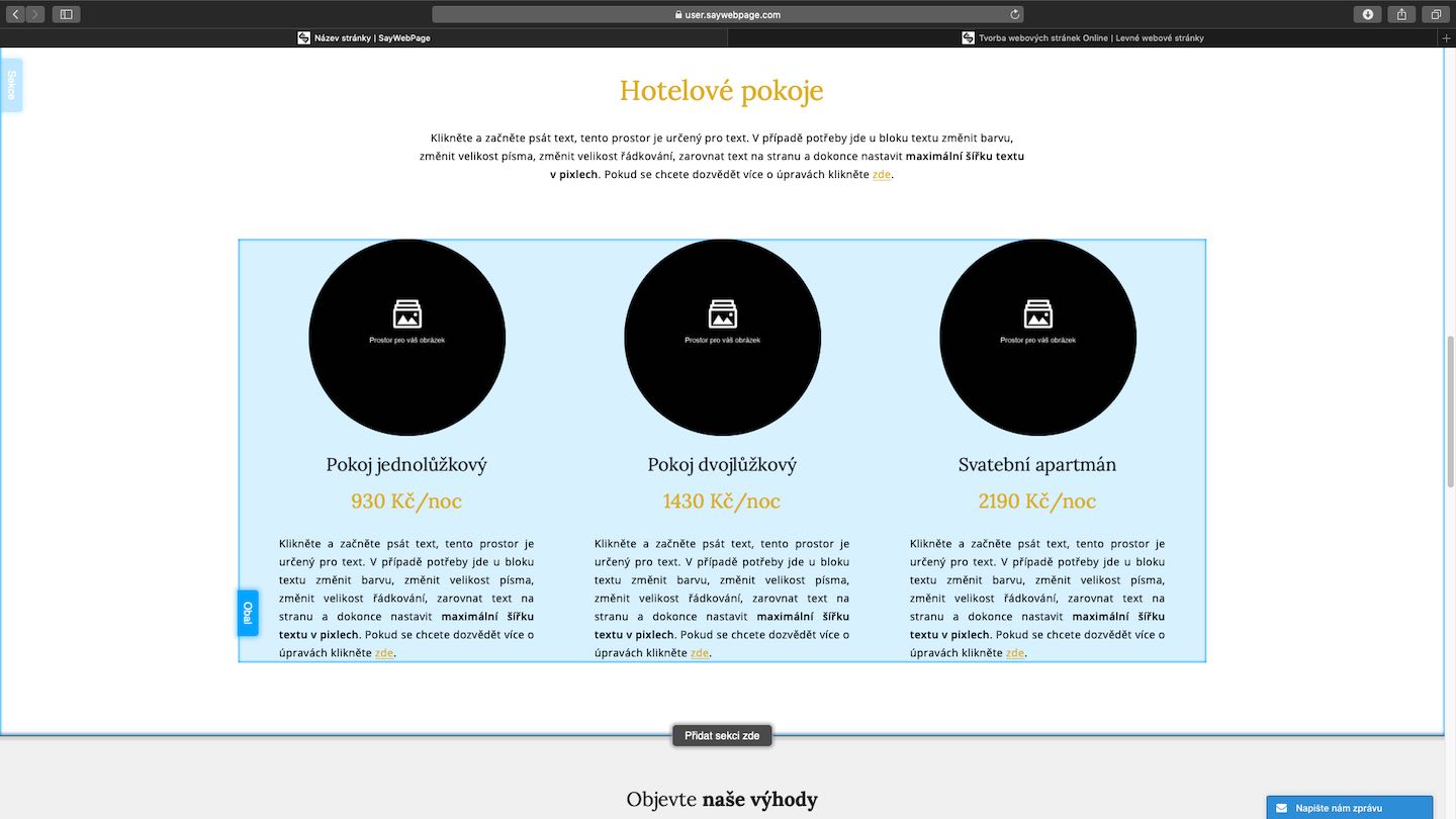 Saywebpage je zaměřen především na živnostníky a menší podnikatele, kteří si mohou levně a jednoduše vytvořit kvalitní a profesionálně vypadající webové stránky. V ceně celého balíčku je samozřejmě jak .cz doména, tak i hosting, na kterém web poběží. Celá práce s rozhraním Saywebpage je svým způsobem takové lego, jelikož si vybíráte z předpřipravených elementů, které jen skládáte na sebe. Všechny šablony a elementy jsou responzivní, což znamená, že se zobrazí dobře na většině zařízeních – ať už se na stránku budete dívat z mobilu nebo počítače. Rychlé načítání a datová optimalizace společně s maximální optimalizací pro vyhledávače je samozřejmostí. Saywebpage mohu jen a jen doporučit a myslím si, že pokud hledáte někoho, kdo by vám udělal webové stránky, tak nyní s hledání můžete přestat. Ode dneška si totiž své vlastní webové stránky můžete vytvořit úplně sami. Levně, kvalitně a především jednoduše.
