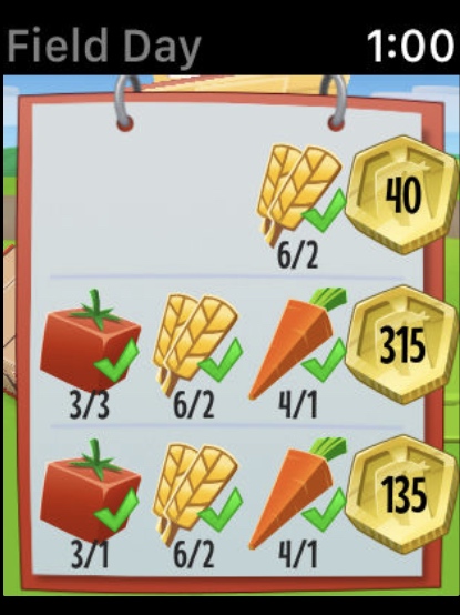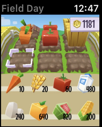 Field Day ponúka presne to, čo sa od poriadneho farmárskeho titulu očakáva. V priebehu hry sa zmeníte na pestovateľa plodín a chovateľa dobytka, ktorý predávate a za dané výzvy utržujete náležité odmeny. Viac obchodovateľných komodít znamená väčšiu pracovnú silu, preto sa počas vývoja hry staráte aj o zvyšovanie počtu pracovníkov. Sympatické grafické spracovanie na štýl legendárnej hry Minecraft spolu s výborným ovládaním vyúsťuje vo výborný zážitok, ktorý je dokonca lepší na Apple Watch ako na ktoromkoľvek zariadení.